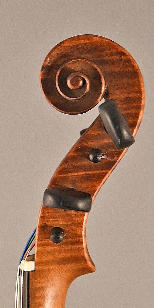 A two-piece back of fine maple, the beautifull French scroll later. Like many large viola's from that period ,