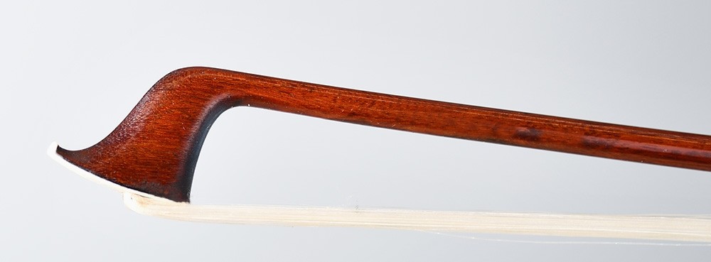 Made after the famous Tourte model - a beautiful violin bow, with an ebony frog with pearl eyes and three part original adjuster.